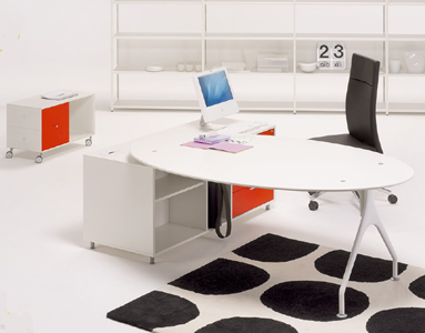 The P46 system is ideal for creating a harmonious working environment where a more creative, relaxed and productive working system is required. The desks have load-bearing structure in fibre-reinforced injection-moulded technopolymer which can be height adjustable, if required. Various top sizes and finishes are available.