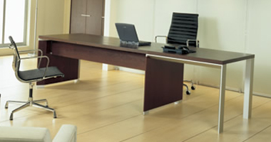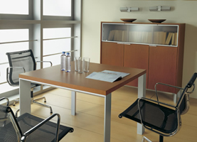 In is an executive range of furniture that includes desks, meeting and coffee tables, pedestals and storage units and desk extensions.