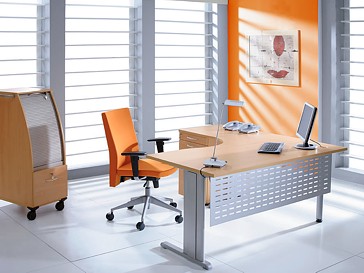 Furniko's Top Office system is characterised by a classical, stylistic line of desks on metal racks in a 'T' shape. The racks are equipped with cable tracking. A great variety of desktop shapes, complete with a big choice of extensions and connectors, enable the arrangement of office space to reflect the changing patterns work. Containers are equipped with either plastic or metal drawers on slide bearings. Top Office has a large range of accessories and is available with modesty panels, screen, extension tops and meeting tables. |