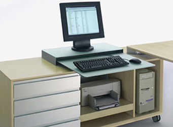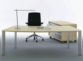 Verso desk is available in different sizes and combinations with tables and pedestal / PC workstation. Tops are in pear, oak, beach, American cherry and various stains. Pedestals are a combination of aluminium, wood and glass. |