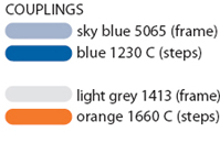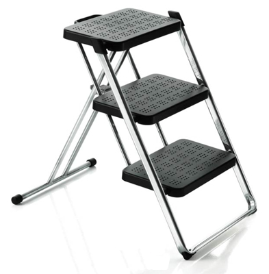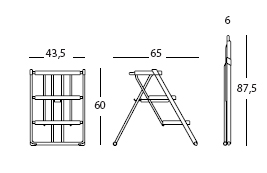 Foldable steps designed by Andries & Hiroko Van Onck is a Magis classic. The frame is either chromed or painted with colour plastic steps in combinations shown below. Dimension shown are in cms.