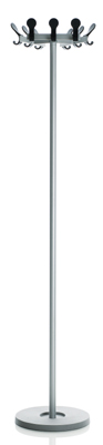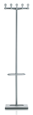 The coat stand is available either flat or triangular shape with an optional umbrella ring. The base is cast metal and the stem & top is from extruded aluminium. Hooks are made from ABS plastic in white, black, grey, red & blue.