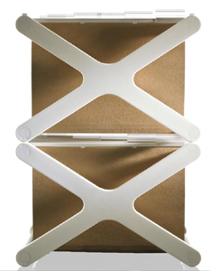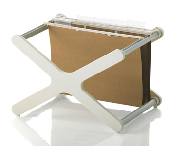 Magis stacking file holder XX designed by Jasper Morrison. Frame made from polypropylene- white, light grey, blue and green, with connecting tubes in anodised aluminium matt natural. The XX is supplied with six cardboard folders including label-holders and labels.