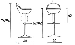 Ciak swivel bar stool is available in three options, fixed height and two height adjustable. The solid seat colours are: blue, red ,green, yellow, black, white, ivory, orange, bordeaux and grey. Base is available in chrome or matt chrome (fixed height version only). |