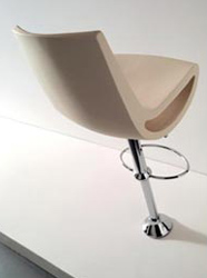 Ciao swivel bar stool is available with a high back or low back version, floor fixed, fixed height or height adjustable. It is also available as a chair on swivel base or 5-star base on castors. Base is available in chrome or matt chrome (fixed versions only). Seat comes in various colours: blue, red ,green, yellow, black, white, ivory, orange, bordeaux and grey.
