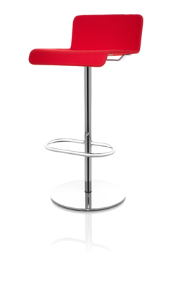 The Millibar barstool is available either with a fabric or leather seat or polyester mesh (8 colours). The frame comes either in powder coated or chrome finish. The footrest in chrome.