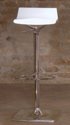 The Quidsh is a swivelling and height adjustable bar stool that is available in a range of seat colours: transparent blue, red, orange, clear, smoke and green; or glossy solid colours - white or black. Base is chromed. |