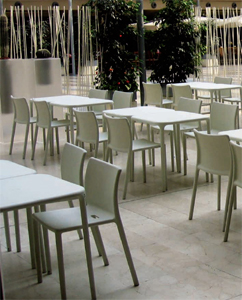 Air chair is stackable and made from polypropylene with added fibreglass. The Air chair is available in the following colours; orange, fusia, sky blue, green, light green, beige and white. The armchair version also comes in grey anthracite. |