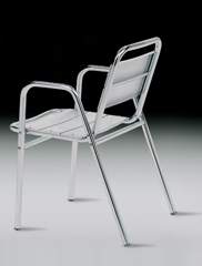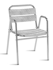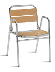 The Aster chair is available with anodised aluminium slats or varnished beech plywood slats in natural, cherry or wenge stain. Frame is polished anodised tube. |