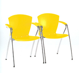 The Carina chair is available with arms, writing tables, upholstered - seat or back. The side and armchair are linkable and can stack up to 5. The frame finishes available are chrome or painted aluminium or black.