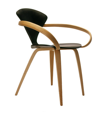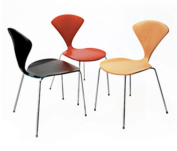 Cherner chairs, designed by Norman Cherner, are available in classic walnut, natural walnut, clear beech, 'Stella' Orange, ebony, white, red gum and any combination of finishes including chromed frame. Custom finishes are also available. Back and / or seat pads are available in spinneybeck leather or customers own fabric.