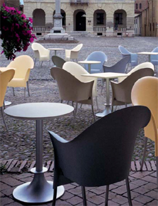 Lord Yo, designed by Philippe Starck, is a stackable armchair (max 4 pieces) with aluminium structure and polypropylene shell in ivory, apricot, grey-blue, white, red and anthracite. Suitable for both indoor & outdoor use. |