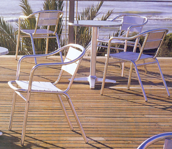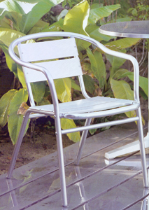 The Manila chair is ideal for inside and outside. The frame is polished anodised aluminium with seat and back in anodised aluminium (suitable for outdoor use), plywood beech, cherry or wenge slats.