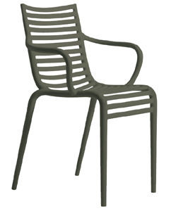 Pip-e chair, designed by Philippe Starck is a stackable (max 4 pieces) polypropylene monobloc armchair in white, yellow, orange and grey colour. Pip-e is suitable for indoor and outdoor use. A Pip-e table is available to complement the chair (image on the right.) |