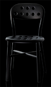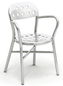 The Jasper Morrison Pipe chair, produced by Magis, has a polished aluminium or painted polyester (green, white or black paint) frame. Seat and back in punched steel plate polished or painted in polyester powder, or in beech plywood (either light or dark). Suitable for outdoor use. |