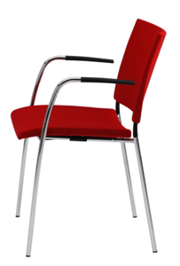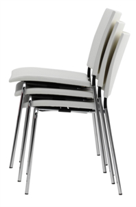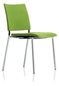 Frames are available in chrome or powder coated in 10 standard colours or, for quantity, any RAL colour. The seat & back are available upholstered in fabric or leather, veneer, black or white laminate or stained in 14 standard colours.