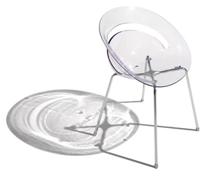 Tina has two base options, 4 legs (aluminium or titanium lacquer or chromed) and swivel base (chromed only). Seat options in plastic are as follows: - transparent (red, blue, clear, smoke, orange) and glossy white or black. |