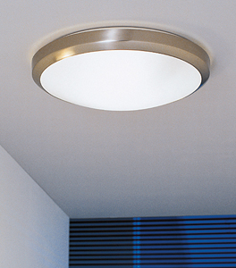 A series of lens style ceiling lights, ranging from 170 to 450mm dia. Satin nickel metal structure with a matt glass diffuser.