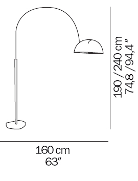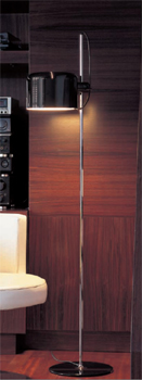 The Coupe floor lamp gives direct light, lacquered metal base, chromium-plated stem, adjustable reflector in lacquered aluminium. Colours available white or black. |