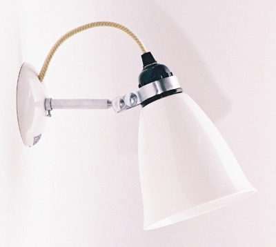 The Hector wall light is available in two sizes, small or medium, with the option of an integrated switch. The shade and base colours available are; white, blue, and green. Hector is available as a table and ceiling and floor light.Light source: small - 40W R50 E14 and medium - 60W GLS E27O/all dims: small - 90x230hmm and medium - 115x260hmm The flex braid is available in 12 different colours.