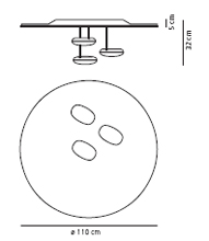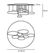 Artemide's Mercury ceiling light designed by Ross Lovegrove, with matching suspension version introduced a more futuristic shape with modern materials based on the old chandelier concept. Materials: die-cast aluminium lighting units; reflective units made of injection-moulded thermoplastic material with metallic finish; die-cast aluminium reflector. Colours: aluminium grey and polished chrome. Light emission: indirect. |