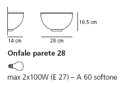 Artemides Onfale light, designed by Luciano Vistosi comes as a wall lamp, with matching table version. The wall light is available in two sizes and in IP 40 degree version (28 vetro chiuso). Materials: wall support in chromed metal. Diffuser in white blown glass with transparent crystal edge. Colours: chrome (wall support), white (diffuser). Light emission: indirect and diffused, only diffused with Onfale 28 enclosed version. |