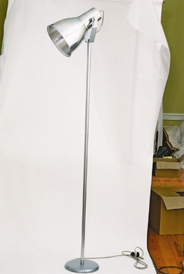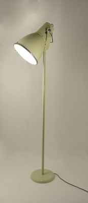 Stirrup floor light is available in four finishes; white, blue, green and polished. Glass visor available but only with 75w bulb (max) or without visor 150w (max) bulb can be used. Wall lights available. |