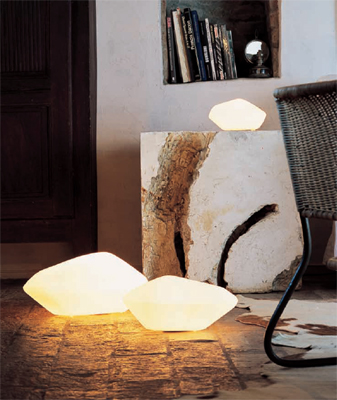 Oluces Stone of glass, designed by Marta Laudani & Marco Romanelli, gives diffused light in opaline opaque Murano glass diffuser of variying sizes. |