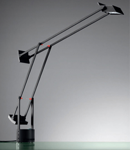 dimensions. Adjustable counterbalanced arms and head. Plus version with tilting head. Materials: painted polycarbonate; Tizio white in painted metal. Colours: black, white, aluminium grey. Tizio Plus and Tizio LED in black only, Tizio micro also in polished chrome. Tizio X30: is produces in numbered edition, with base and head in polished aluminium and rods in shiny anodised aluminium.