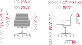 The Aluminium Chair EA117 (shown)is one of the greatest furniture designs of the 20th century. The Aluminium Chair stands out for its intelligent combination of materials. The covers are attached inside the aluminium profile sections and simply stretched over the frame, transforming them from mere coverings to a load-bearing part of the structure. It adapts to fit the body snugly and delivers great comfort, even without extensive upholstery. Comes with height adjustment and tilt. The EA119 is identical to the EA117 but with a higher backrest