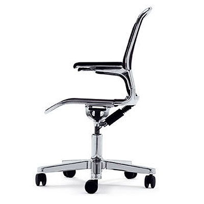 Cloud office chairs and armchairs with extruded aluminium frame chromed or painted. Seat and back in foamed polyurethane upholstered with fabric or leather. 5-star base in die-cast aluminium on glides or castors. Available with pneumatic height adjustment and tilting mechanism. Please note: dimensions in cms. |