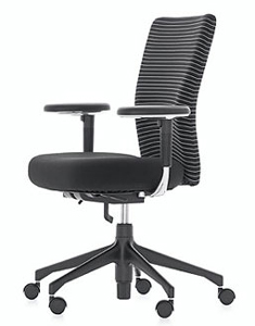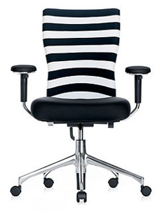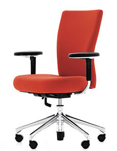 T-chair swivel chair conforms to EN 1335. Flexible polypropylene backrest. Back and seat upholstery made of CFC-free polyurethane foam. Upholstery covers in Torso (95 % polyester, 5 % elasthan) fabric. Seat and backrest covers can be removable and washed. With or without universal armrests or armsupports (height, breadth and depth can be adjusted). Five-star base comes in four versions: plastic base (flat), plastic base (ascending) basic dark, polished or chrome-plated die-cast aluminium. Hard castors for carpeting; as an option with soft castors for hard floors. Also available as a version with adjustable seat depth and backrest height. |