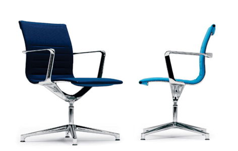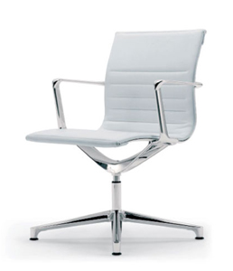 The Una meeting chairs with die-cast aluminium structure, chromed, polished or painted. Seat and backrest made of a combination of expanded vinyl and nylon upholstered with fabric or leather. The Una meeting chairs comes as an executive option, i.e. soft pad cushion seat and back. |