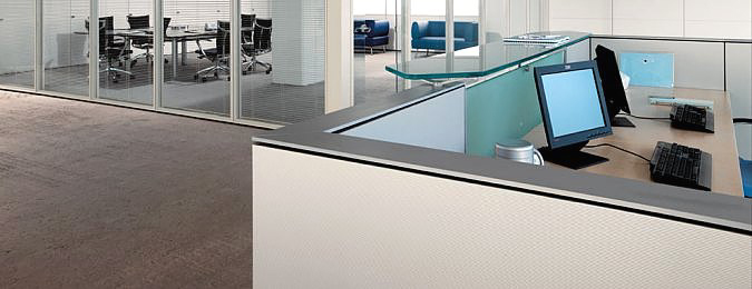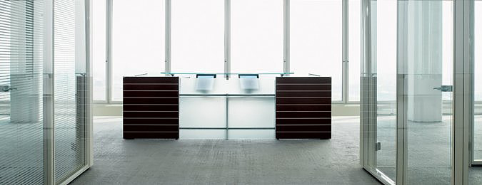 The free-standing structure of Estel's News is perfect for creating complex arrangements, and not only in the operative office. The workstation of the receptionist, that may be wired in every part, serves both as furniture item designed for the reception area, and self-sufficient operative desk. |