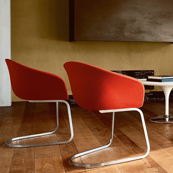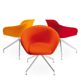 Arper have remodeled the Duna to give better support and enhance the design. The Duna is available with four frames: 4-legs, 4-star, pedestal and cantilever. The polypropylene shell is available in five colours and is stackable in the 4-leg version. Upholstery is available in fabric & leathers and customers own fabric / leather etc.