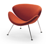 The Orange Slice chair is available in fabric or leather upholstery. Customer's own fabric or leather is available subject to the manufacturer's approval. The Orange Slice is produced in two versions, low (F437) and high (F437B) seat height and a footstool (P437). |
