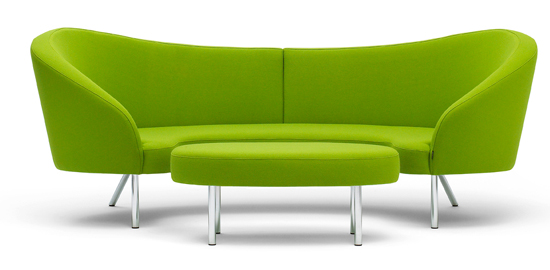 Orgy sofa and ottoman is available in fabric only. COM option available. Legs are chromed. O/all dims: Sofa: 2520x480-1250x970hmm, seat ht: 440mm Ottoman: 1080x590x440hmm