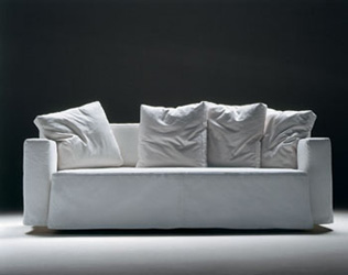 Frame in metal with foam polyurethane padding covered with a protective fabric lining. Seat extendible with a patented mechanical movement. Backrest cushions in polyurethane and dacron or four-backrest cushions version down-filled. Platform with wooden slats. Upholstery is removable and comes fabric only.