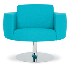 Zero chair is available with or without a back rest. The swivel base comes in chrome or silver grey finish. Upholstery is in fabric or leather with option of COM or COL..