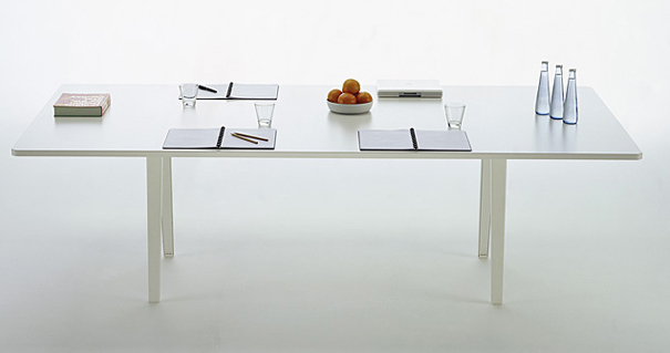 Joyn table, designed by Ronan and Erwan Bouroullec for Vitra, is ideal for conference, meeting or general office use. The top is available in light oak or soft white with the legs and substructure is in soft white. |