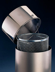 The top is made in AISI 316 stainless polished stainless steel with a flip down cigarette end tray (model CP only) in cast aluminium, fitted with standard lock.