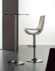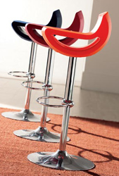 Ciao swivel bar stool is available with a high back or low back version, floor fixed, fixed height or height adjustable. It is also available as a chair on swivel base or 5-star base on castors. Base is available in chrome or matt chrome (fixed versions only). Seat comes in various colours: blue, red ,green, yellow, black, white, ivory, orange, bordeaux and grey.