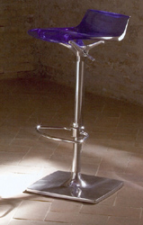 The Quidsh is a swivelling and height adjustable bar stool that is available in a range of seat colours: transparent blue, red, orange, clear, smoke and green; or glossy solid colours - white or black. Base is chromed. |