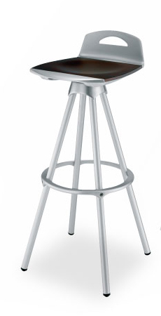 Timon barstool seat and footrest are made from cast aluminium with the frame in aluminium tube. The seat is available in aluminium, polyamide and combined aluminium / wood (various colours) and upholstered.