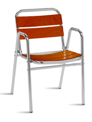 The Aster chair is available with anodised aluminium slats or varnished beech plywood slats in natural, cherry or wenge stain. Frame is polished anodised tube. |