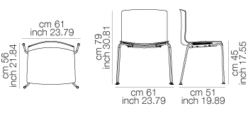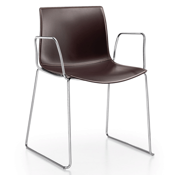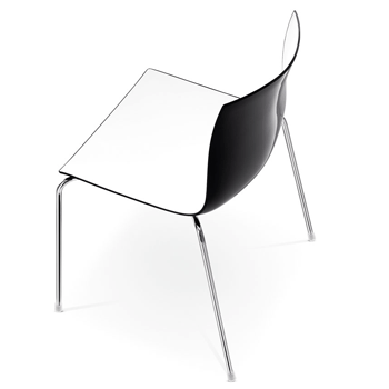 Arper's Catifa 46 & Catifa 53, side or armchair, is available either on four legs or with a sledge base. The frame is in chrome, satin finish chrome or patined (satin & painted frames are suitable for outdoor use). The seat comes either in single colour polypropylene (9 colours), bi-colour polypropylene (front always white and the back is in 9 different colours). The seat can also come upholstered in a variety of fabrics, leathers, suede or faux leather. Catifa 46 & Catifa 53 can also come with a wooden seat with the following veneer options: bleached, natural or wenge oak. |