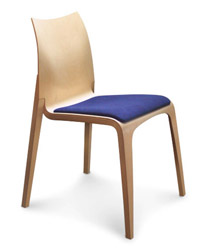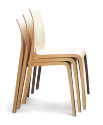 Flow is a multi-purpose stacking chair and is available in a wide range of lacquered or stained finishes and in different wood veneers.