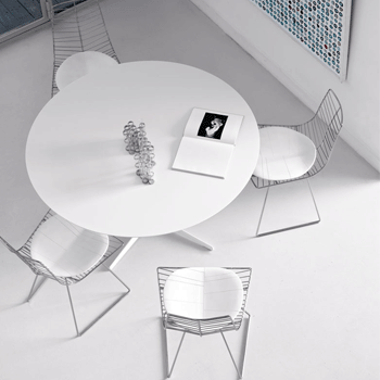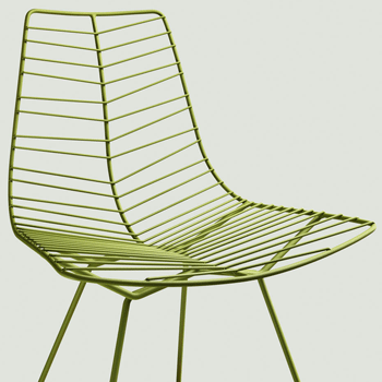 The Leaf from Arper is suitable for indoors or out (except the chrome frame version). Other finishes include white, green and mocha. Matching seat pads are available, upholstered in either polyurethane or soft leather. |