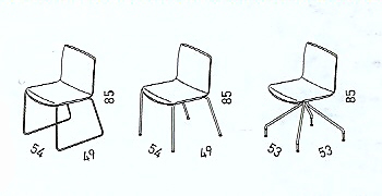 Linar chair is available with three frame options; sledge, legs or swivel. The frame is available in stainless steel or painted in gloss or matt silver |