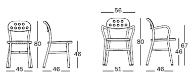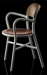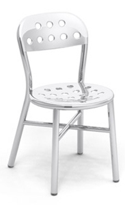 The Jasper Morrison Pipe chair, produced by Magis, has a polished aluminium or painted polyester (green, white or black paint) frame. Seat and back in punched steel plate polished or painted in polyester powder, or in beech plywood (either light or dark). Suitable for outdoor use. |